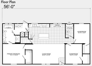 BEDS: 3 BATHS: 2 SQ FT: 1456 W X L: 28′ 0″ x 56′ 0″